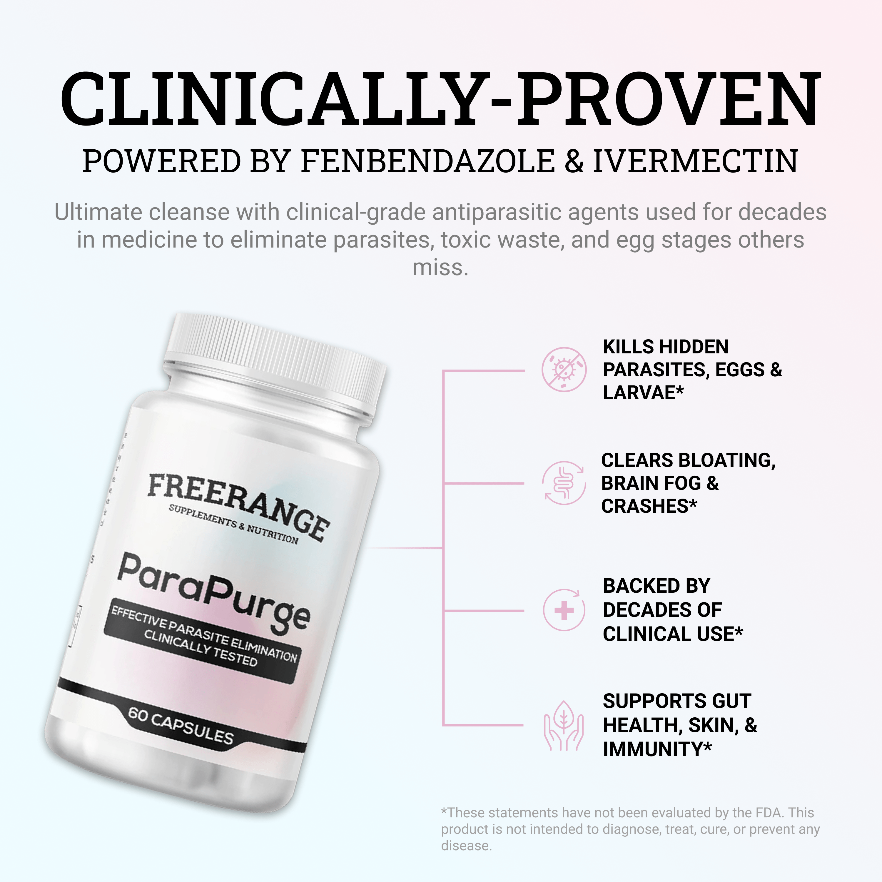 Powered By Ivermectin & Fenbendazole: Clinically studied ingredients shown to help eliminate parasites, worms, and hidden infections from the body.
